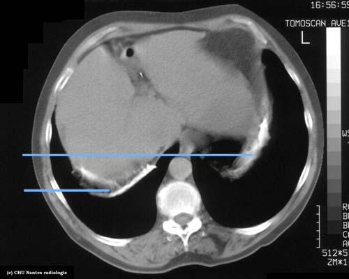 calcifications pleurales des coupoles diaphragmatiques (coupe tangente aux coupoles )