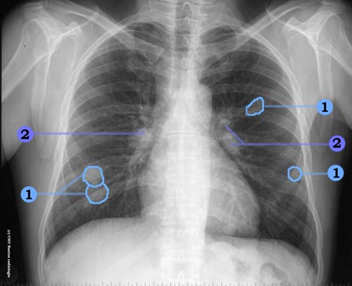 opacités nodulaires solides bilatérales à contours nets en lâcher de ballons