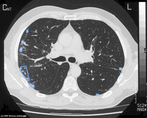syndrome interstitiel nodulaire avec des nodules de topographie périphérique sous pleurale